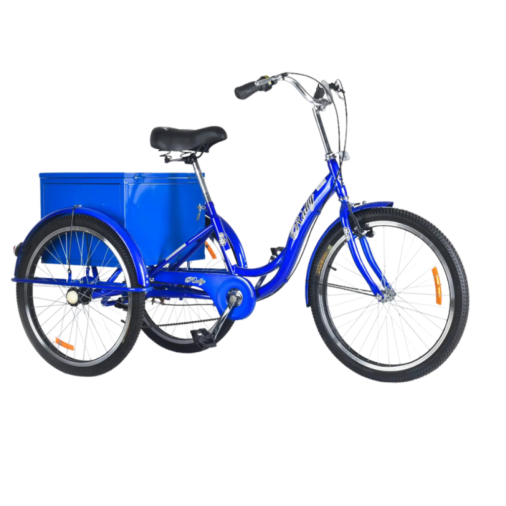 A three-wheeled bicycle designed for children, combining safety and comfort.