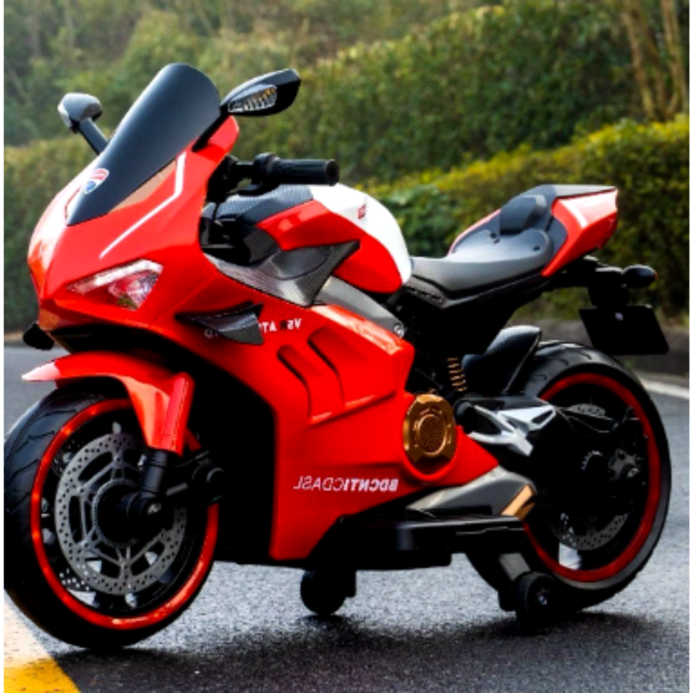 دراجة كهربائية للأطفال بلون أحمر جذاب، مزودة بمساند أمان صغيرة للحماية، تجمع بين الأناقة والراحة. تعزز المهارات الحركية والثقة بالنفس أثناء اللعب في الهواء الطلق احصل عليها من ميم تويز