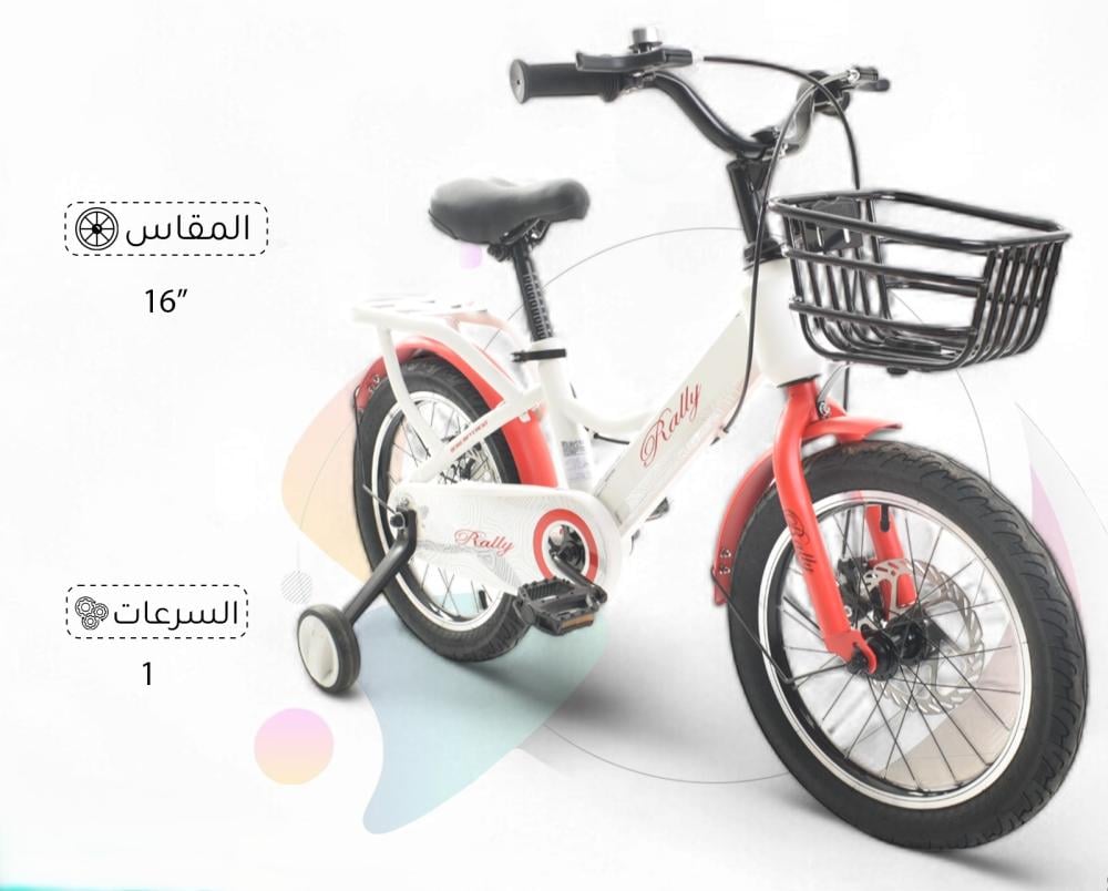دراجة أنيقة باللون الأبيض الفاخر مع لمسات حمراء لافتة، تأتي بسلة أمامية معدنية وعلاقة خلفية قوية لحمل الحقيبة أو الألعاب، تجمع بين الشكل العصري والمواصفات العملية.