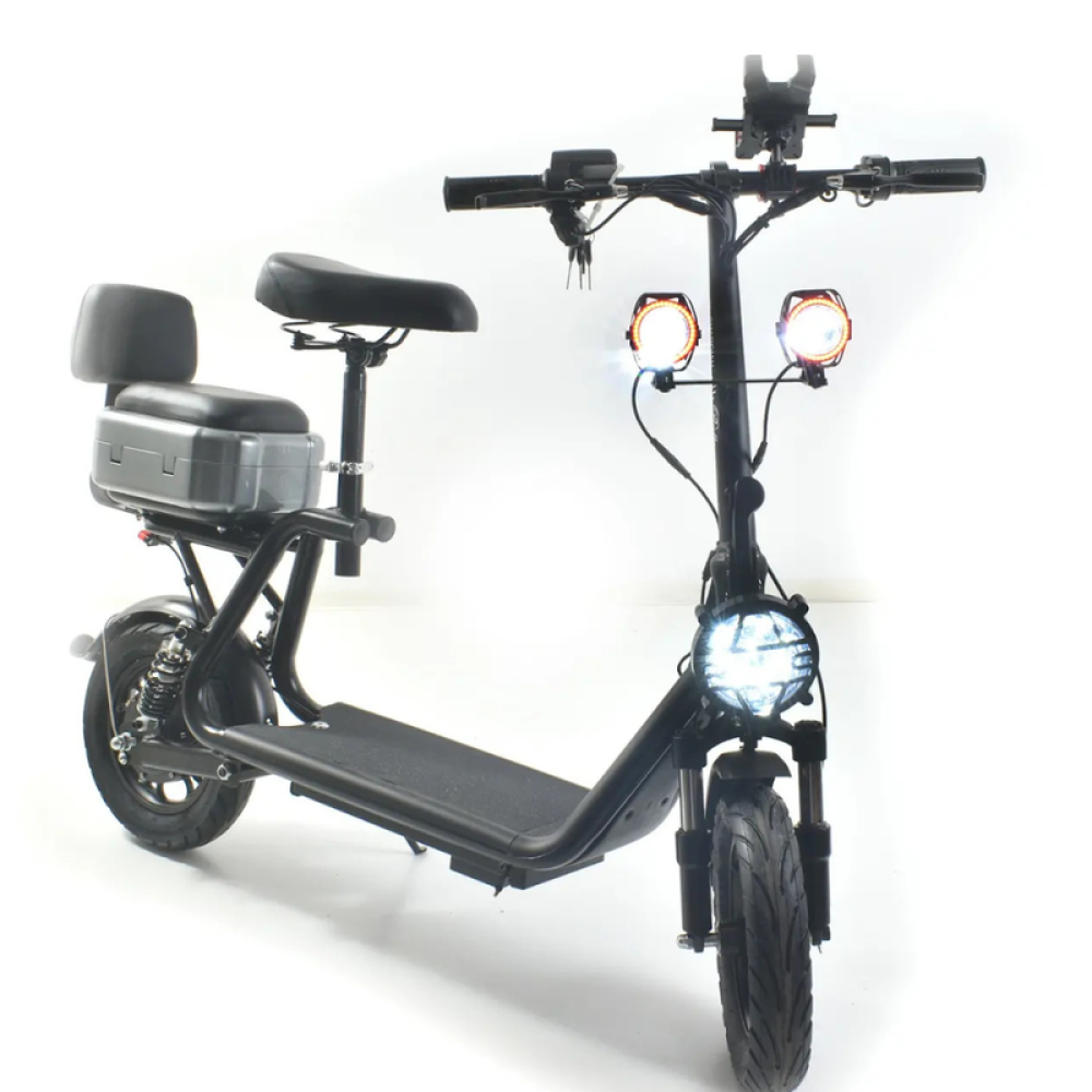 استمتع بتجربة تنقل مريحة وممتعة مع السكوتر الكهربائي الذي يأتي مع كرسي مريح وأضواء أمامية لزيادة الأمان أثناء القيادة. يتميز هذا السكوتر بمقاس L، وهو مثالي للاستخدام في الطرق الوعرة بفضل إطاراته القوية. كما يحتوي على مقعد قابل للإزالة لمرونة أكبر أثناء الاستخدام، بالإضافة إلى مصابيح LED ثلاثية أمامية لإضاءة الطريق في الظلام. ويأتي أيضًا مع حوامل لصندوق إضافي لتوفير مساحة تخزين مريحة.