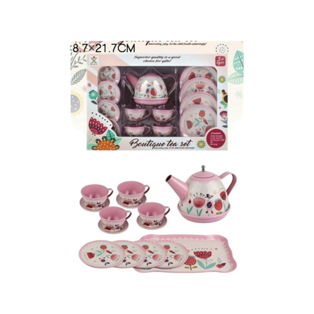 اجعلوا وقت اللعب مليئًا بالأناقة والمتعة مع طقم الشاي "بوتيك تي ست" الساحر! 🌟 هذه المجموعة الوردية الجذابة، المصنوعة بجودة فائقة، تضم إبريق شاي، أكواب، صحون، وصينية، كلها مزينة برسومات زهور وفواكه لطيفة. مثالية لتشجيع لعب الأدوار (حفلات الشاي، استضافة الضيوف)، وتنمية المهارات الاجتماعية والخيال. مناسبة للأطفال من عمر 3 سنوات فما فوق. هدية رائعة لساعات طويلة من المرح والأناقة!