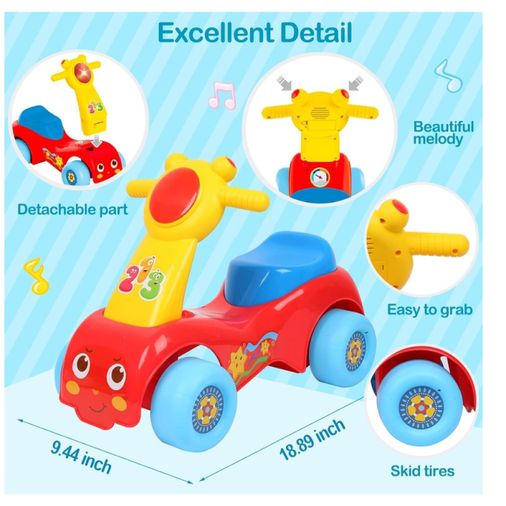 موتور يدوي ممتع للأطفال، يتيح لهم التجول بحرية والاستمتاع بالأصوات الموسيقية المدمجة. يوفر تجربة لعب حماسية ويشجع على النشاط البدني.