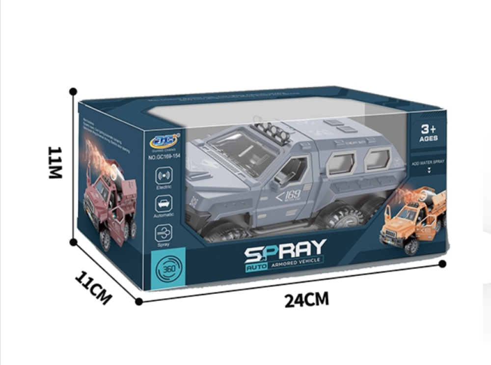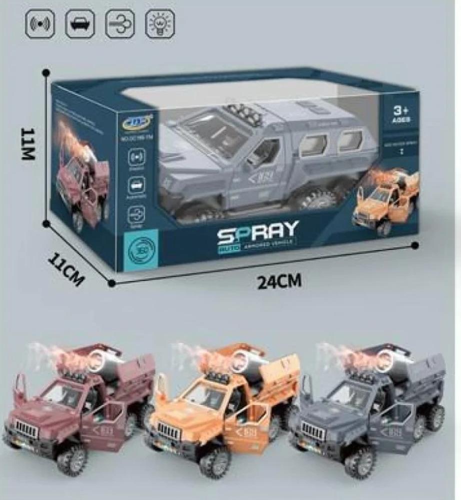 360 Degree Rotating Military Armored Truck Toy with Rocket Launcher, Spray Gun for Kids, with Light and Sound for Kids Ages 3+, Boys Made of high-quality plastic materials with a smooth finish, no sharp edges and corners sticking out of the toy ensuring safe play for kids Multifunctional with 360 degree forward and backward universal wheel