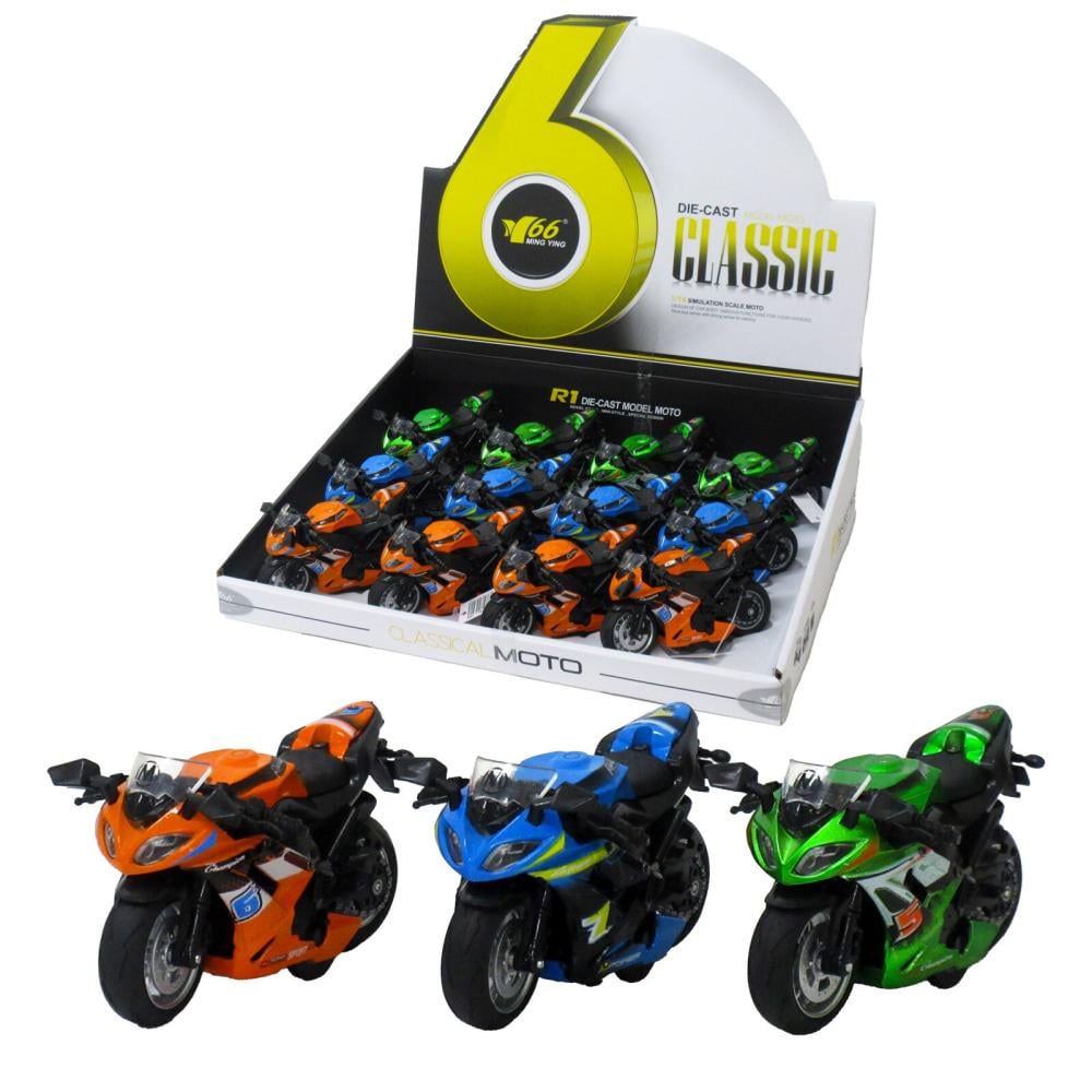 For bike lovers, 6.5cm metal motorcycles will impress every biker. Recommended for children from 3 years old. Made of metal with selected plastic parts, these motorcycles are beautiful models. This toy is ideal for both boys and girls. These motorcycles are available in the set in different eye-catching colors. A fun group game, this set brings extreme excitement to these little racers.