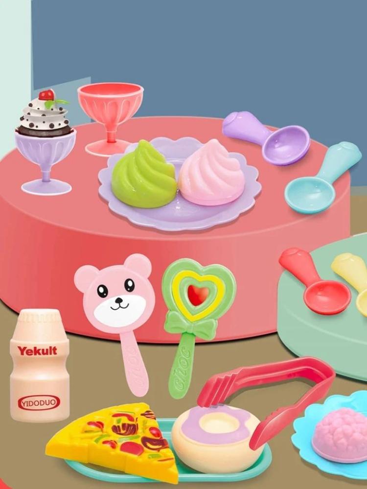 Wonderful Little Girls Ice Cream Sets Princess Pretend Play Tea Set for Little Girls Toddlers Ages 3 4 5 6 Made of eco-friendly plastic with smooth surface and curves, exquisite and realistic, every child loves pretend play, pretending to play different family role, start playing with your child Each cake is divided into two parts with a velcro strip inside to bring the two parts together so that when the child uses the toy knife to cut the food, it breaks into two slices